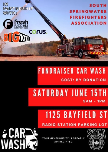 South Springwater Firefighter Association 2024 Charity Car Wash Where Fresh 93.1 & Big 101.1 Parking Lot , 1125 Bayfield Street North, Barrie, ON, L4M 4Y6 Map When Jun 15/24 09:00 AM - Jun 15/24 01:00 PM Age All