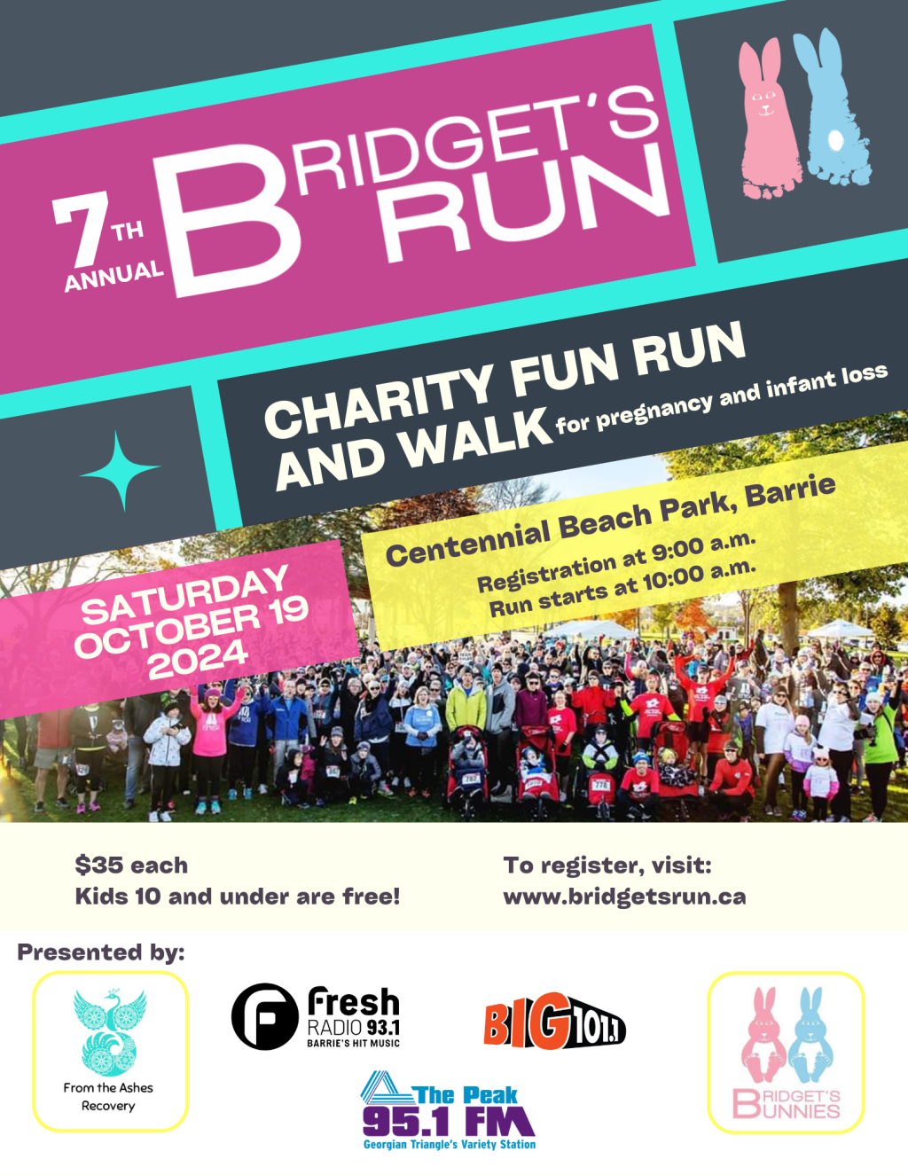 7th Annul Bridget’s Run Where Centennial Beach Park, Barrie Map When Oct 19/24 09:00 AM - Oct 19/24 12:00 PM Age All Website bridgetsrun.ca