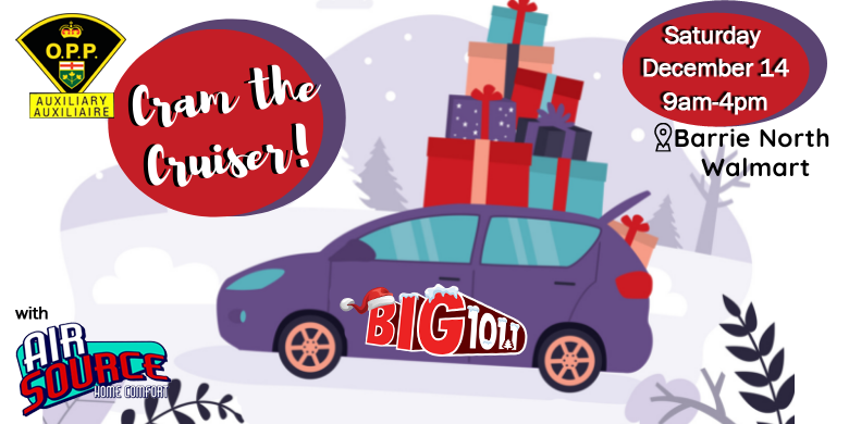 Our Annual Cram A Cruiser Toy Drive for Barrie & District Christmas Cheer is coming up Saturday December 14th at the Barrie North Walmart from 9am to 4pm.