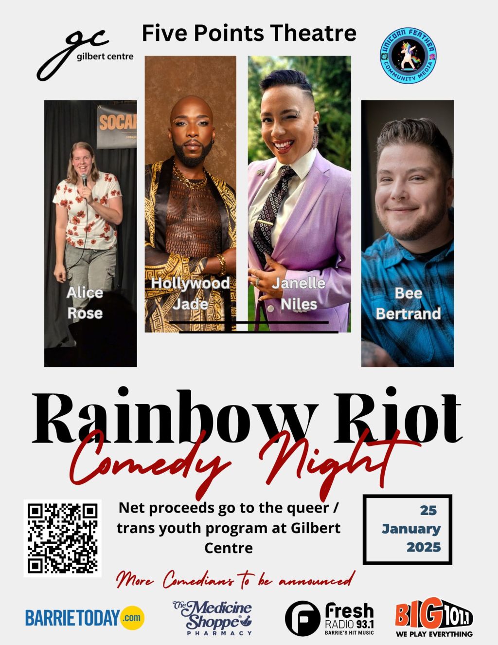 Rainbow Riot Comedy Night Where Five Points Theatre, Barrie Map When Jan 25/25 07:00 PM - Jan 25/25 10:00 PM Age All Website https://tprocob.ticketpro.ca/en/pages/1629237817