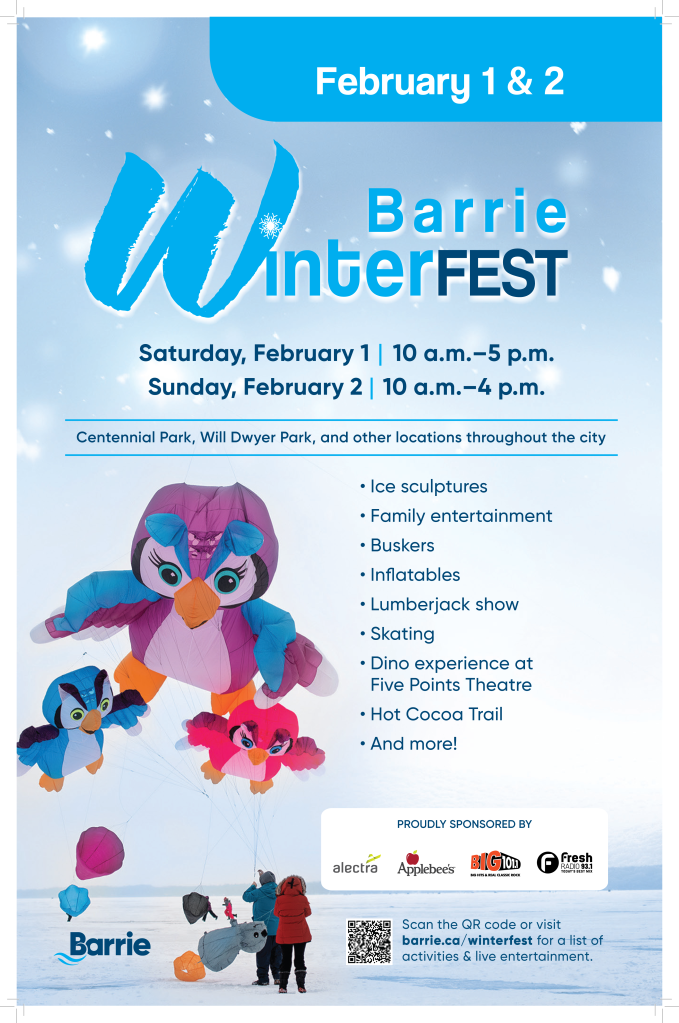 Barrie Winterfest Where Centennial Park, Barrie Map When Feb 01/25 10:00 AM - Feb 02/25 04:00 PM Age All Website https://www.barrie.ca/community-recreation-environment/community-events/barrie-winterfest?gad_source=1&gclid=Cj0KCQiA7se8BhCAARIsAKnF3ryKCqWv9KmYCkDOjjm2Pt_inEyV7H8u2igvhrNTPmsTwIQheZyOjUcaAkZ9EALw_wcB