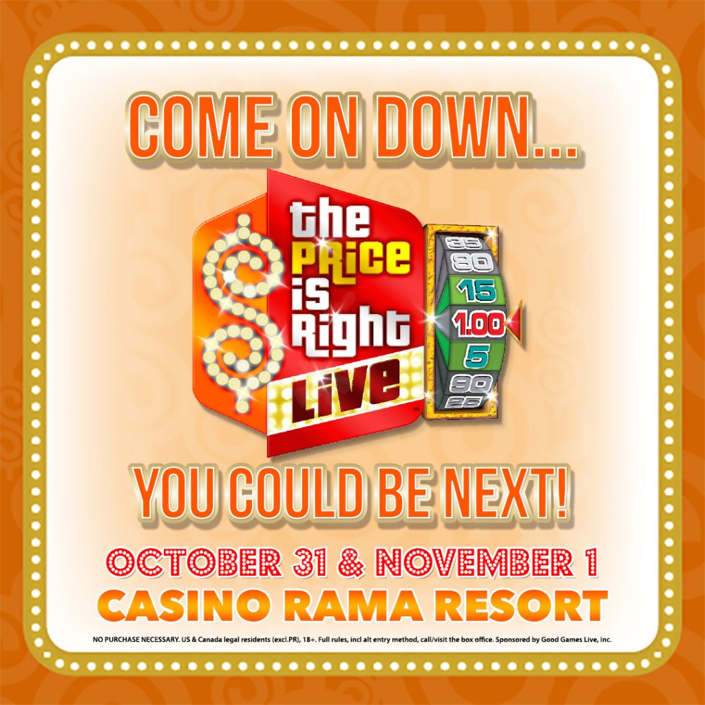 “Come on Down” to THE PRICE IS RIGHT LIVE™, and experience for yourself the interactive, live stage show (non-televised) version of the legendary television game show. This family show is making its way back to Casino Rama Resort, along with all your favorite games, fabulous prizes, and all the excitement you know and love! Alongside our Celebrity Host, randomly selected contestants play everyone’s favorite games like Plinko™, Cliffhangers™, The Big Wheel™ and even the fabulous Showcase. The show features an array of fantastic prizes, from appliances and electronics to dream vacations and even a brand-new car. Lucky audience members can even win prizes right from their seat. Consider yourself a Superfan or have ever dreamt of spinning The Big Wheel™, now is your chance to come up on stage and try to land on ONEDOLLAR! The next contestant might be YOU!