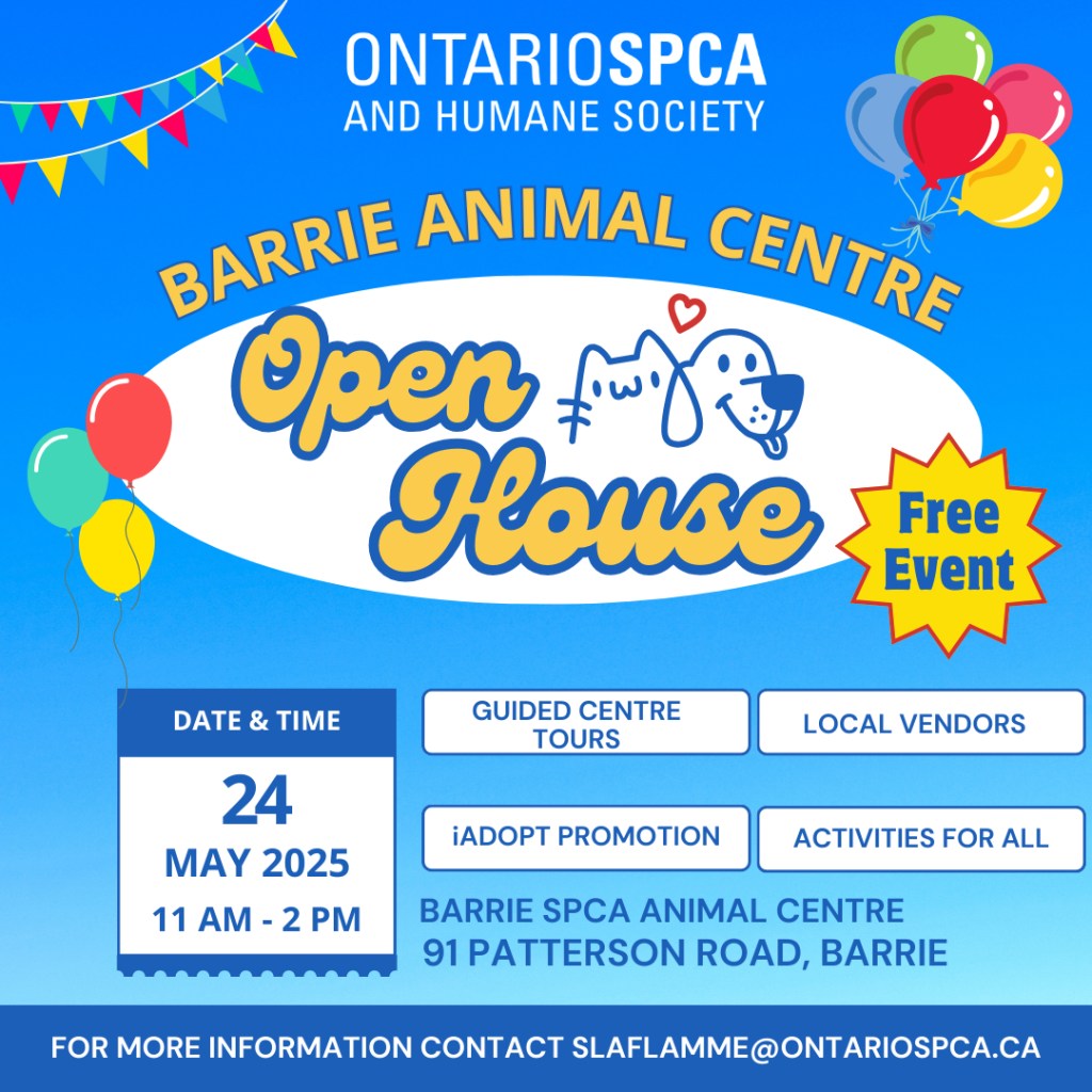 Join us at the Ontario SPCA Barrie Animal Centre on Saturday, May 24, 2025, from 11:00AM to 2:00PM for a day full of fun, furry friends, and community connection!