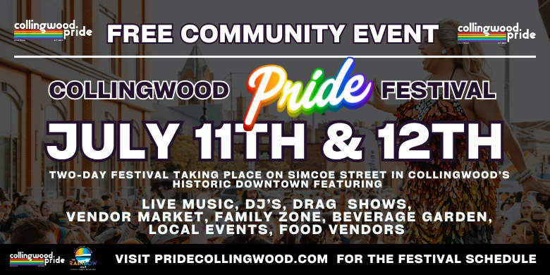 Love wins in Collingwood July 11th & 12th! The Collingwood Pride Festival returns for its 5th year, proudly presented by the Rainbow Club of South Georgian Bay.