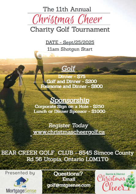 Christmas Cheer’s highly popular annual golf tournament is BACK! Join us again this fall for an afternoon of golf followed by a Christmas themed buffet for dinner and a silent auction.
