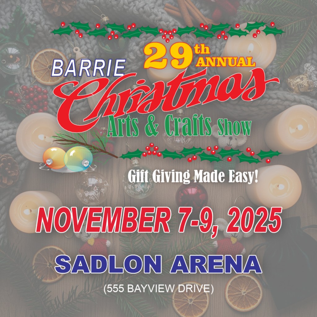 On November 7th, 8th, and 9th, over 150 of Ontario’s most talented artisans & crafters come together at the Sadlon Arena for the 29th Annual Christmas Arts & Crafts Show & Sale. Choose from pottery, stained glass, teddy bears, Christmas crafts, body care products, jewellery, clothing, woodcrafts, ceramics, and more, making Christmas shopping easy.